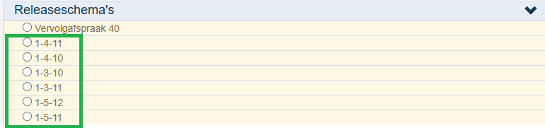 Bij het inplannen, kies je voor een van de schema’s in het groene blok zoals hieronder aangegeven staat. Zo hoef jij niet na te denken over welke dagen, dat doet het systeem voor je.